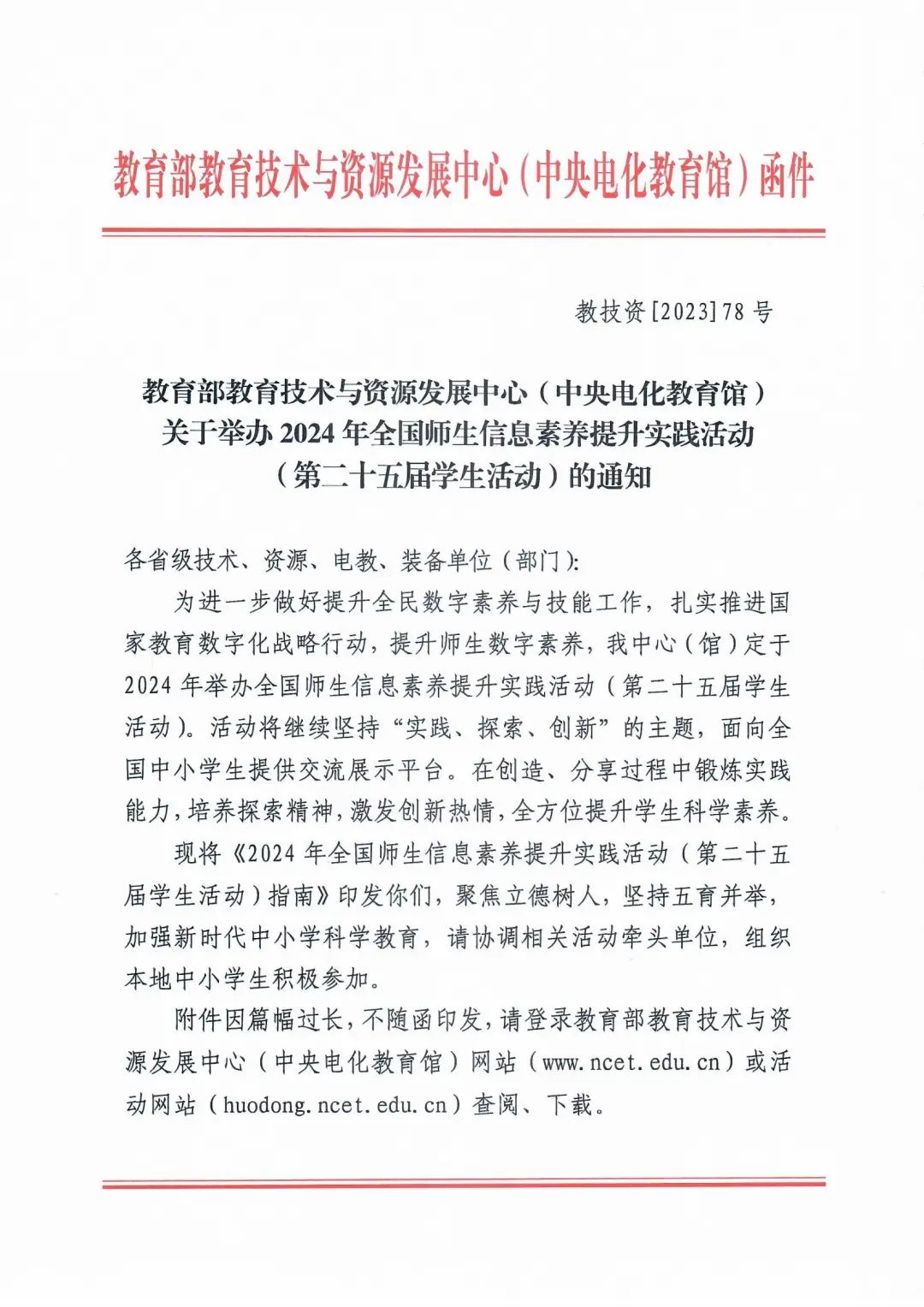 第二十五届全国学生信息素养提升实践活动在2024年又将迎来新的开始。本届活动共设置了数字创作、计算思维、创意智造、优创未来、智能博物、以及智能机器人六个项目。