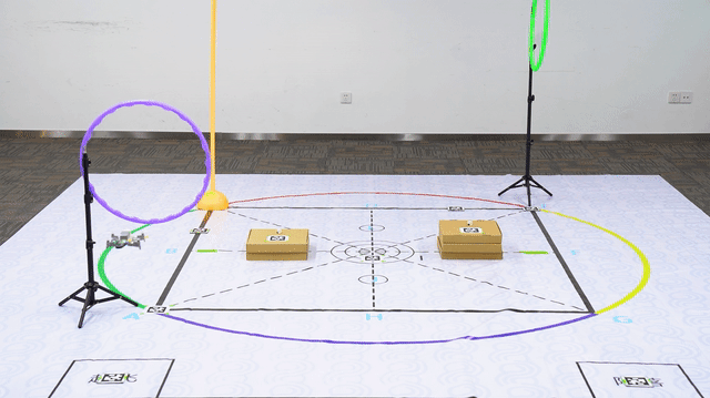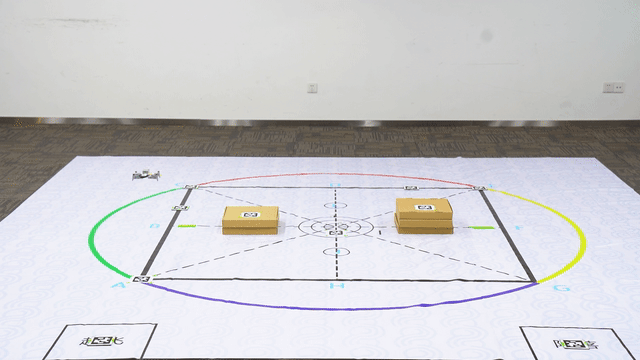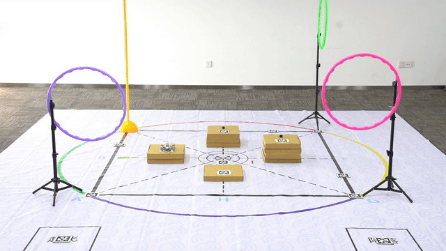 任务中飞行器需随机抽取2个任务点,按字母顺序依次完成环绕竖杆、穿越圆圈等任务。
