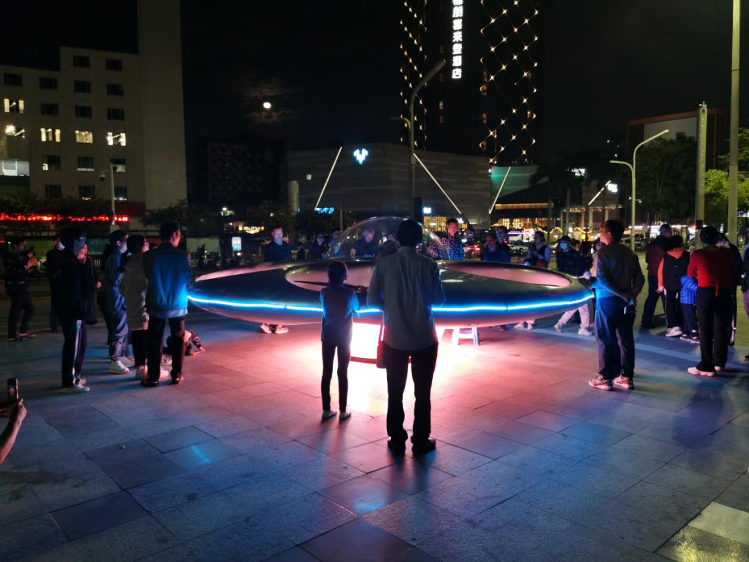 2023年12月31日晚,由深圳市宝安区的企业深圳智航无人机有限公司带来的“载人飞碟”跨年飞行表演秀,在宝安区新安街道的新安广场上隆重上演。