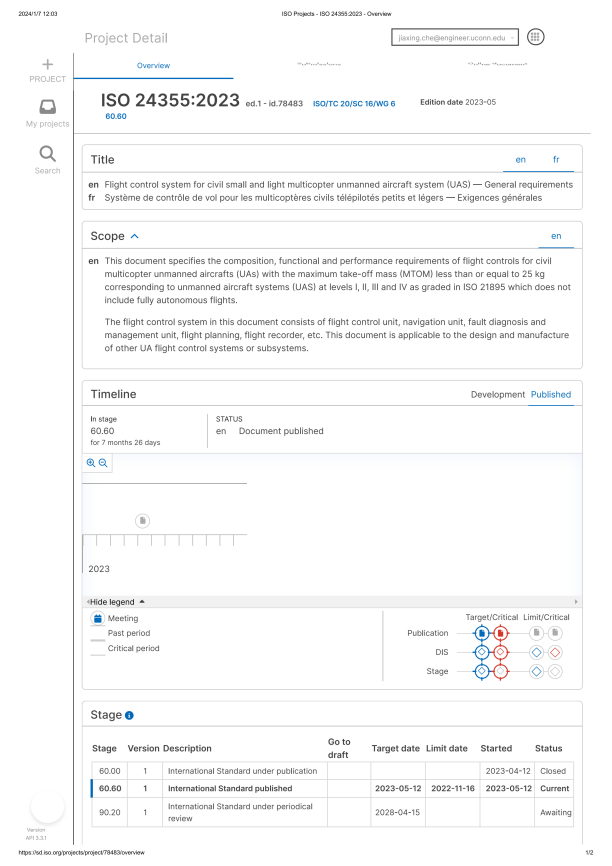 ISO24355《民用轻小型多旋翼无人机飞行控制系统通用要求》