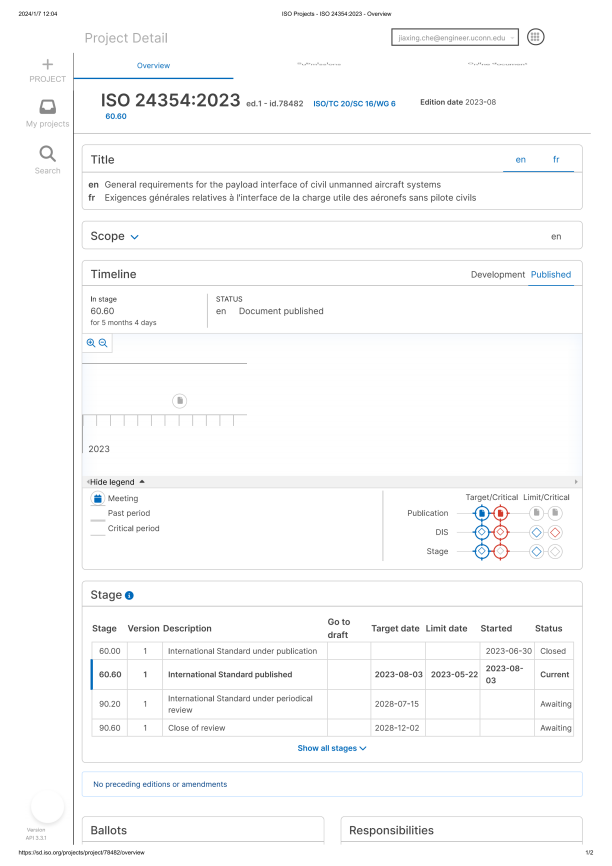 科技创新标准先行,在无人机系统标准化领域,科比特航空-车嘉兴博士担任国际标准化组织“航空航天器”技术委员会“无人机系统”分委会“无人机子系统”工作组(ISO/TC20/SC16/WG6)组长;主持两项在研国际标准ISO 24354General Requirement for Civil Small UAS Payload Interface《民用轻小型无人机任务载荷接口通用要求》、ISO 24355General Requirement of Flight Control System for Civil Small and Light Multirotor UAS《民用轻小型多旋翼无人机飞行控制系统通用要求》。这两项标准已于2023年正式获批发布。