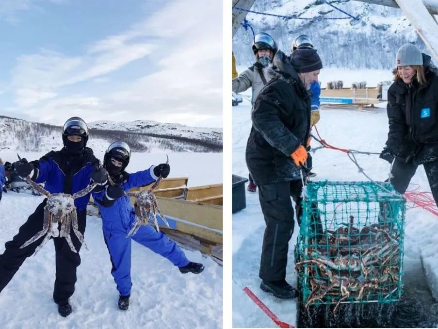 当然我们还将前往帝王蟹的捕捞胜地——希尔克内斯,穿上特制的防寒服,搭乘雪地摩托拉动的巨大雪橇,深入挪威的宏辉大气的冰封峡湾,跟随教练从冰洞中拉出捕捞帝王蟹陷阱,这就是接下来要上桌的美味了!