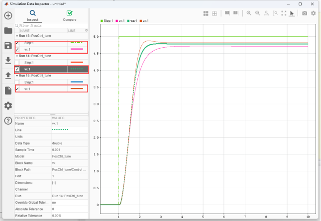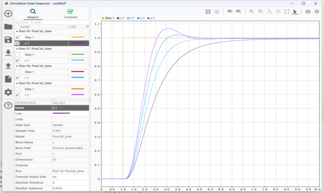 在“Simulation Data Inspector”观察阶跃响应,如下图: