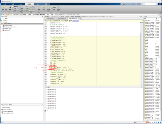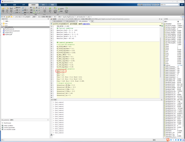如下图在“Init_control.m”由小增大位置环比例项系数,即“Kpxp”的值,分别为0.6、0.8、1.0和1.2。