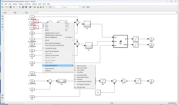 扫频得到Bode图:设定信号输入输出点。将“x_desired”输入线设为“Open-loop Input” ,“ x ”设置为 “Open-loop Output”如下图所示。
