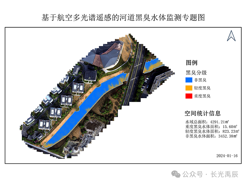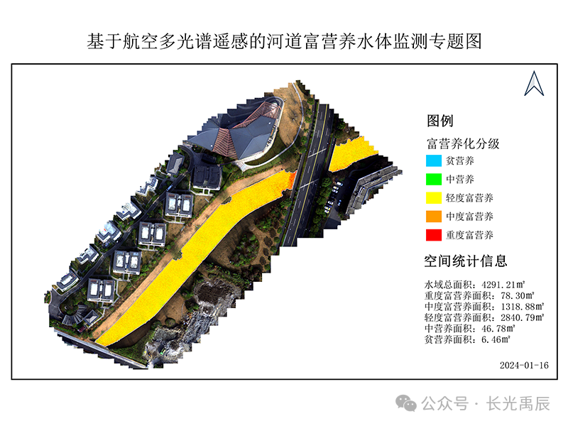 参考富营养化状态评价标准、地表黑臭水体评价标准,利用特征光谱构建分类指数,实现富营养化、黑臭水体分级反演及空间信息统计,辅助分析工业废水、渔业养殖、生活用水等对周边水体的影响,助力污染源排查、水环境评估。也可以使用Yusense River实现河道数据管理与成果可视化,为常规河道生态监测提供数据支持。