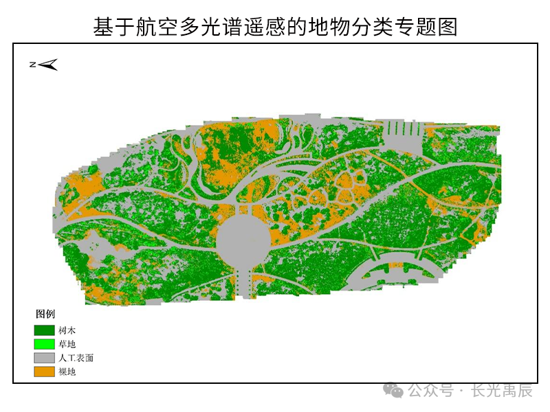 基于多光谱航空遥感技术提取地表覆盖信息,可对公园区域内的土地类型进行分类,为相关管理部门实现数字化公园管理与景观格局优化提供可靠依据。