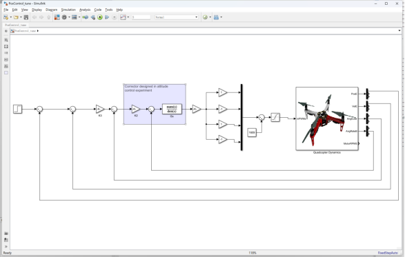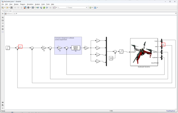 >定点位置控制器设计实验4本章涉及的位置控制是定点控制问题,位置控制器的输出为期望姿态,所以位置控制器的设计是以姿态控制器为基础的,整个位置控制实验流..." />