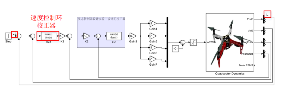 对x通道位置环进行校正:加入Step 3中得到的速度环校正器,如下图所示。
