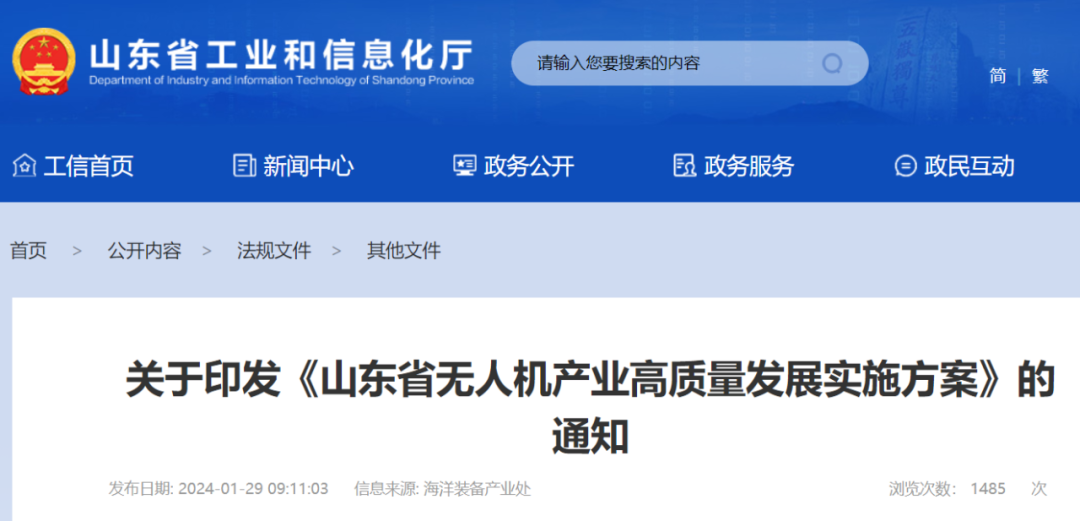 近日,为进一步加大对我省无人机产业支持力度,尽快提升产业发展质效,经省政府同意,省工业和信息化厅等16部门联合印发了《山东省无人机产业高质量发展实施方案》(以下简称《方案》),现就有关内容解读如下。