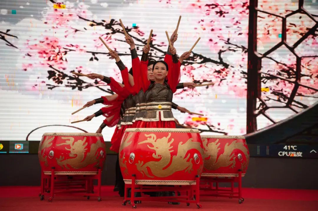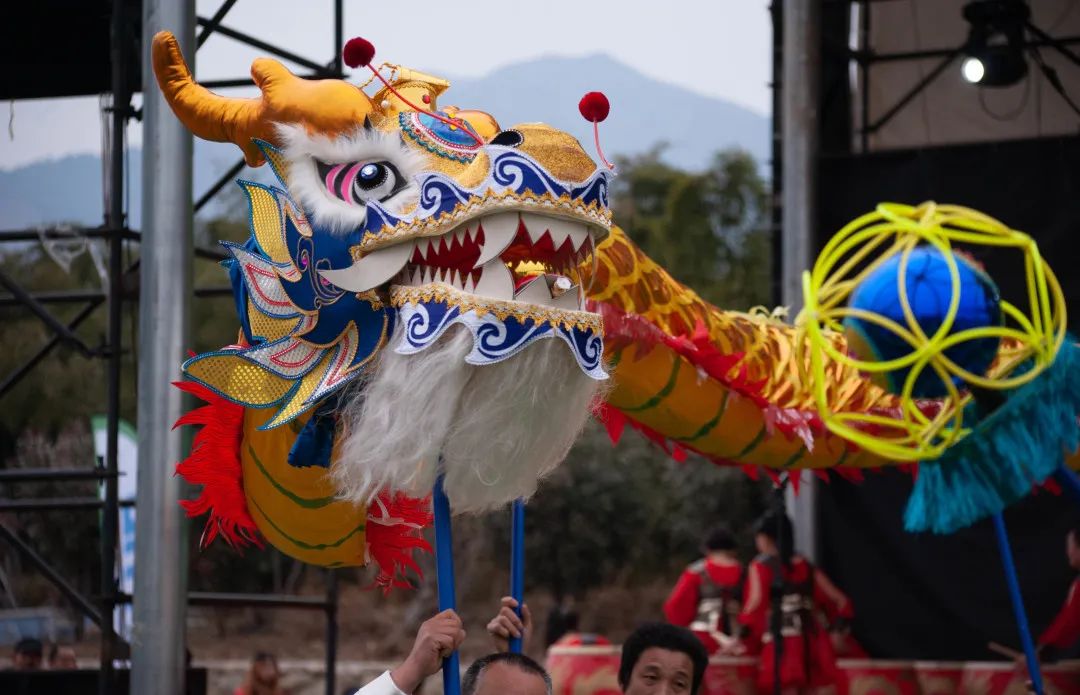 有震感的击鼓和舞龙表演