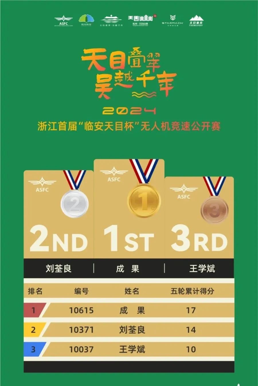 此次天目杯竞速公开赛的前三名分别为: