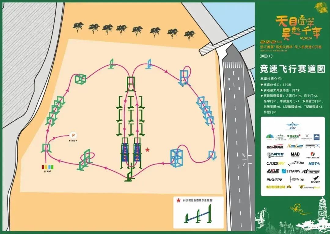 赛道外形为天目山风景区logo内部为宝塔形