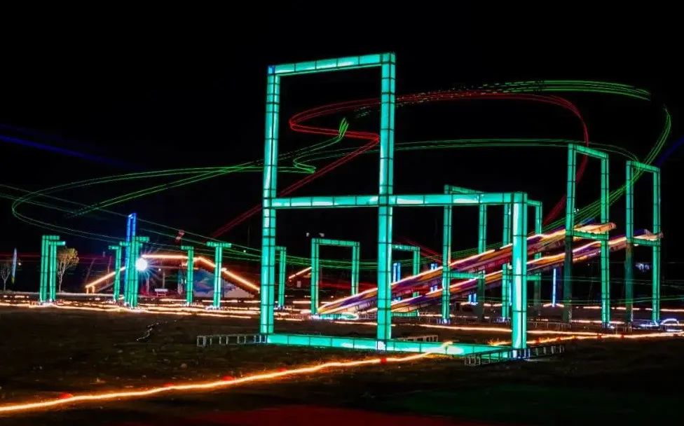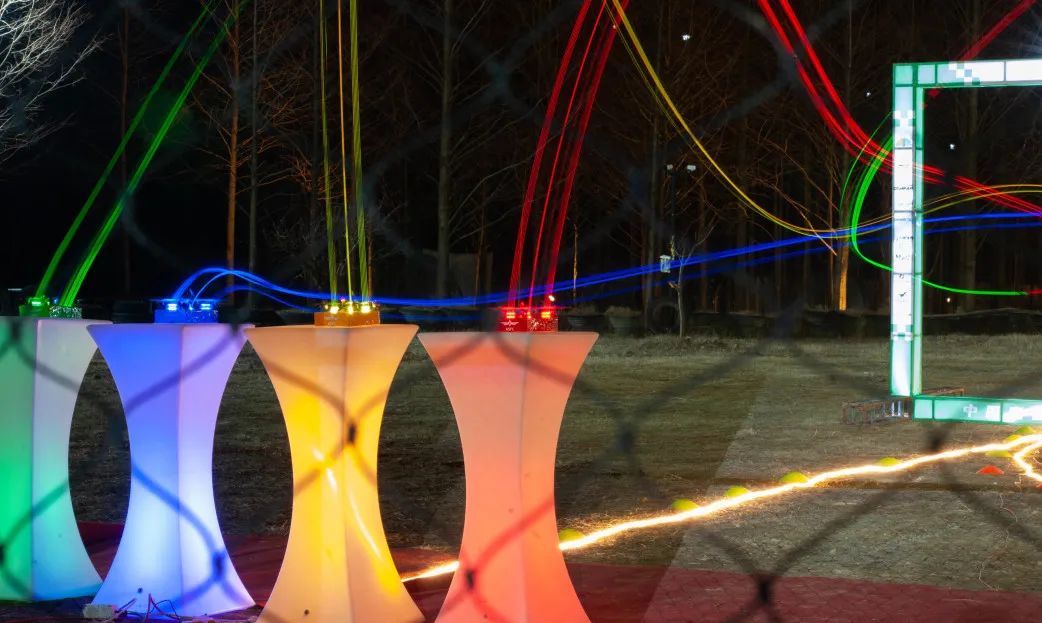 夜间伴随穿越机的飞驰画出优美的弧光