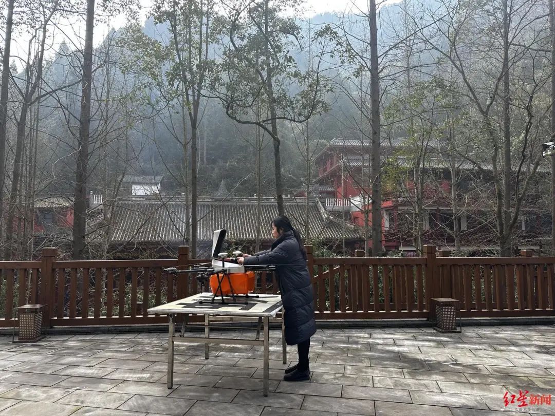 “春节前夕,我们和白鹿镇、通济镇、丹景山镇部分餐饮店、民宿商家沟通,很快敲定合作,由我们向这些商家提供无人机和专业飞手。”周小明说,春节期间,外地游客在这些集镇进行露营,而露营点大多距离集镇上的餐饮点位较远,加之当地山地地形受限,送餐较为不便,此时,无人机便派上用场。
