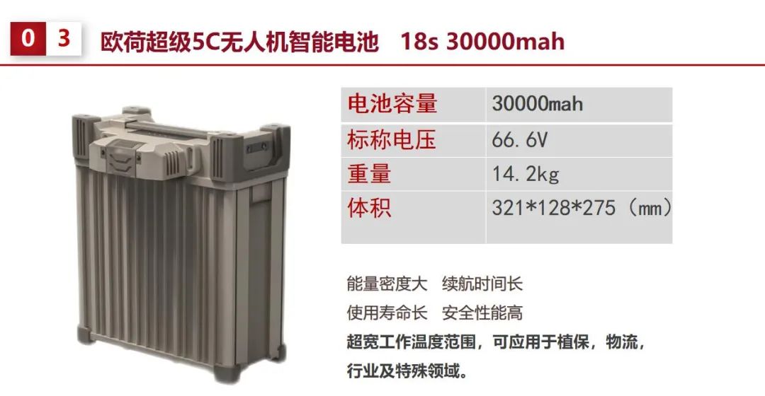 公司基于新能源电池智能管理系统(BMS)的研发、设计、智能制造能力,逐渐形成了以叉车供电系统、无人机供电系统、影视供电系统、新能源电站存储管理系统、电动车供电系统、氢燃料供电系统为主的六大业务格局,公司目前自主研发的无人机智能电池,SPower智能电池管理系统处于植保无人机行业领导者地位,填补了植保无人机智能电池市场的空白。