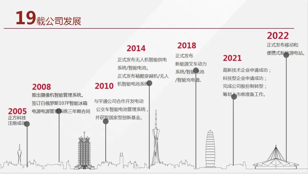 正方科技创立于2005年,是一家以“智能锂电池模组/锂电池BMS管理系统整体研发、智能制造及销售”的高新技术企业。