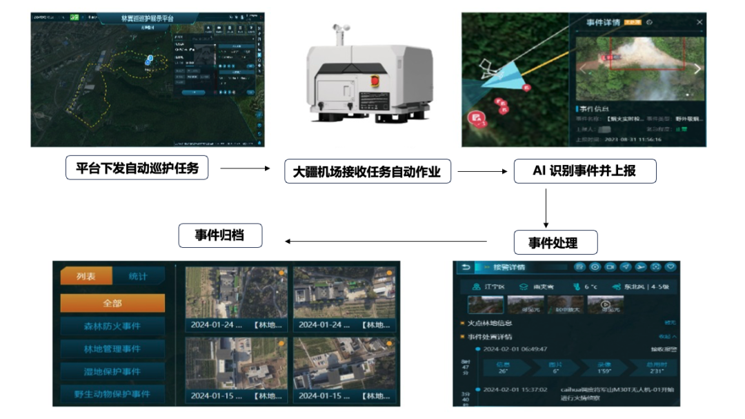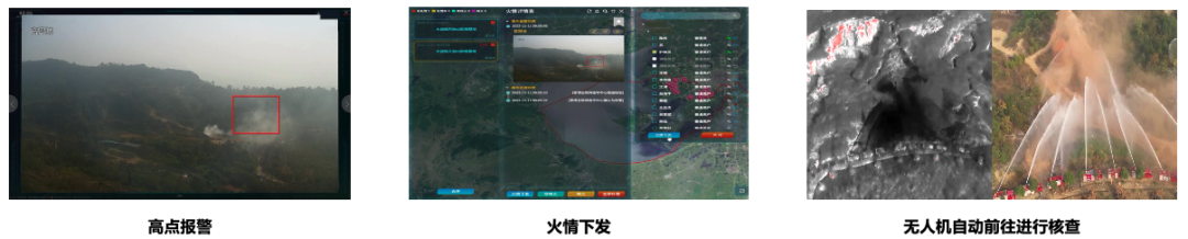 一旦接收到预警信息,系统将通过监控摄像头位置、地理信息等数据计算准确位置,快速派发无人机进行核查,同时地面工作人员无缝对接前往现场,形成空地协同火情管理。