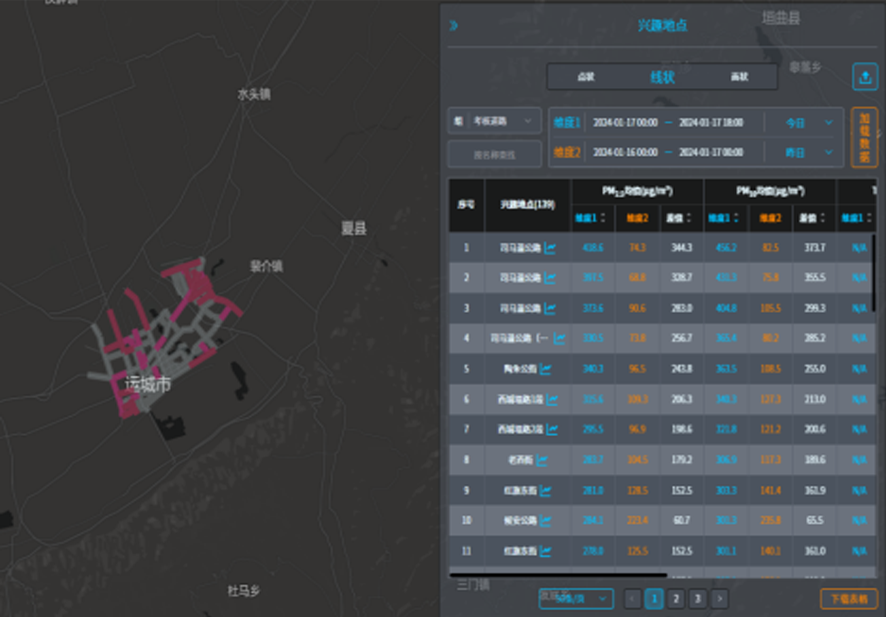 2024年1月,项目运维方基于平台“实时概览”功能,锁定的高值路段,实地排查问题根因,有效提升污染治理及时性:
