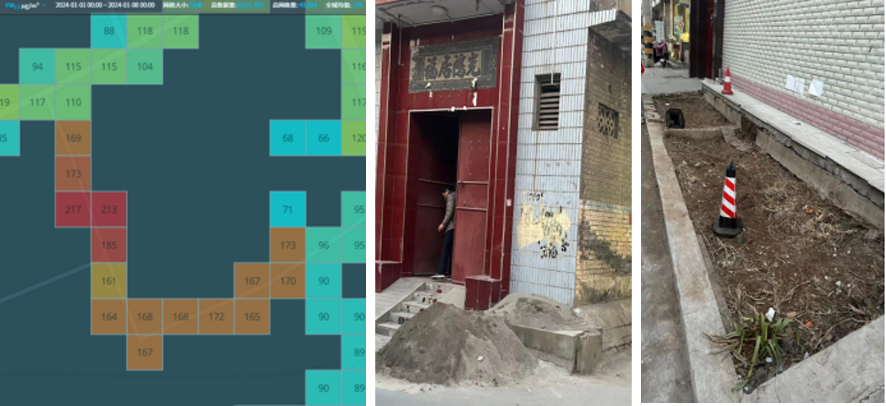 2024年1月,项目运维方基于平台“历史云图”功能锁定的高值区位,深入现场实施污染源排查,揭示了一些隐秘扬尘源: