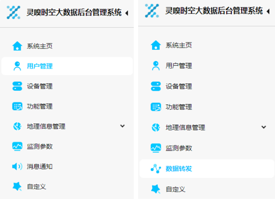右图:通过后台管理系统“数据转发”功能,实现数据互联互通,促进跨部门应用