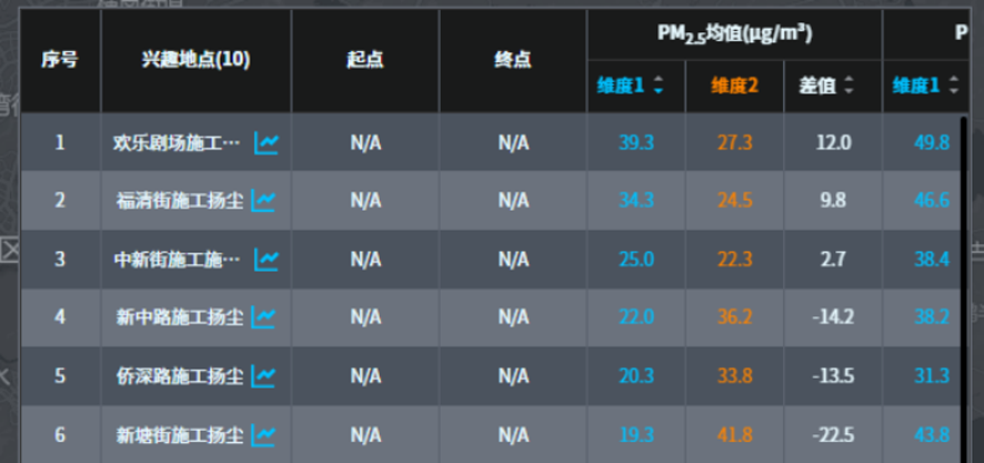 5、分类管理:通过“兴趣地点”功能对施工、道路等不同污染源实施分类管理。