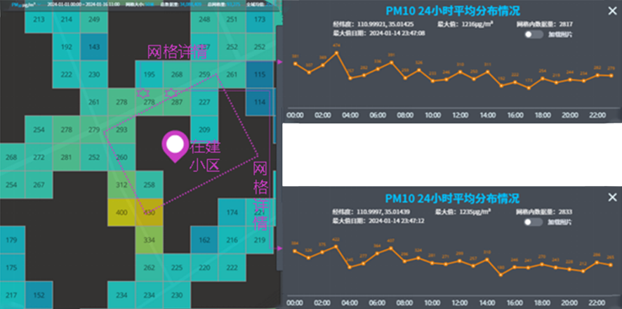 空间分析:住宅项目周围的PM10浓度显著高于其他区域,指示扬尘问题的空间集中。