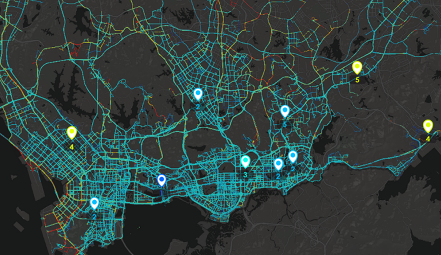 图:通过“兴趣地点”功能,对不同道路实施评价与排名