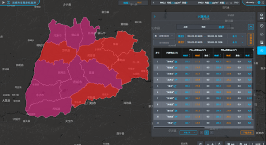 2024年1月,项目运维方基于平台海量数据,全面分析、综合研判目标区位扬尘问题: