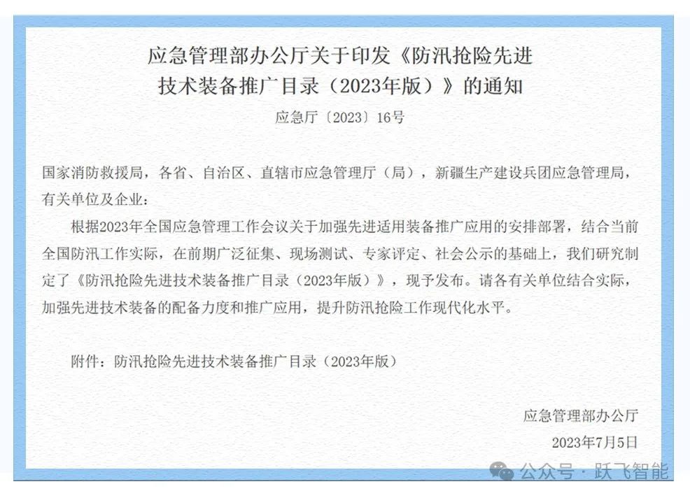 相关政策来支持无人机在消防和防汛领域的应用,包括制定使用规范、设立技术标准、提供资金支持和培训机构人员等方面。这些政策支持将进一步促进无人机在消防和防汛中的应用和推广,为应急救援工作提供强有力的支持。