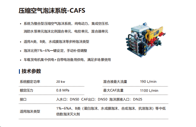 此外,综合消防保障车搭载了先进的CAFS系统,采用独特的现混合结构,灭火剂保存时间超长,通过压缩空气驱动,能够快速覆盖燃烧物表面,提高灭火效率,节约灭火剂使用量,搭配TS-X12型系留无人机,特别适合于“打早、打小”实现高层建筑火灾的早期控制与扑灭。