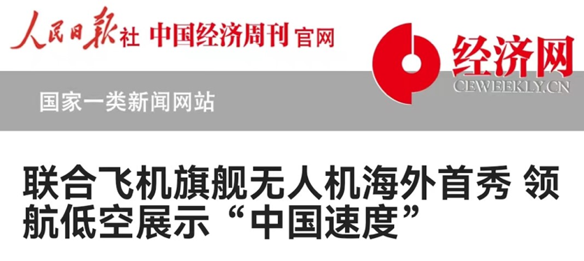 联合飞机旗舰无人机海外首秀 领航低空展示“中国速度”