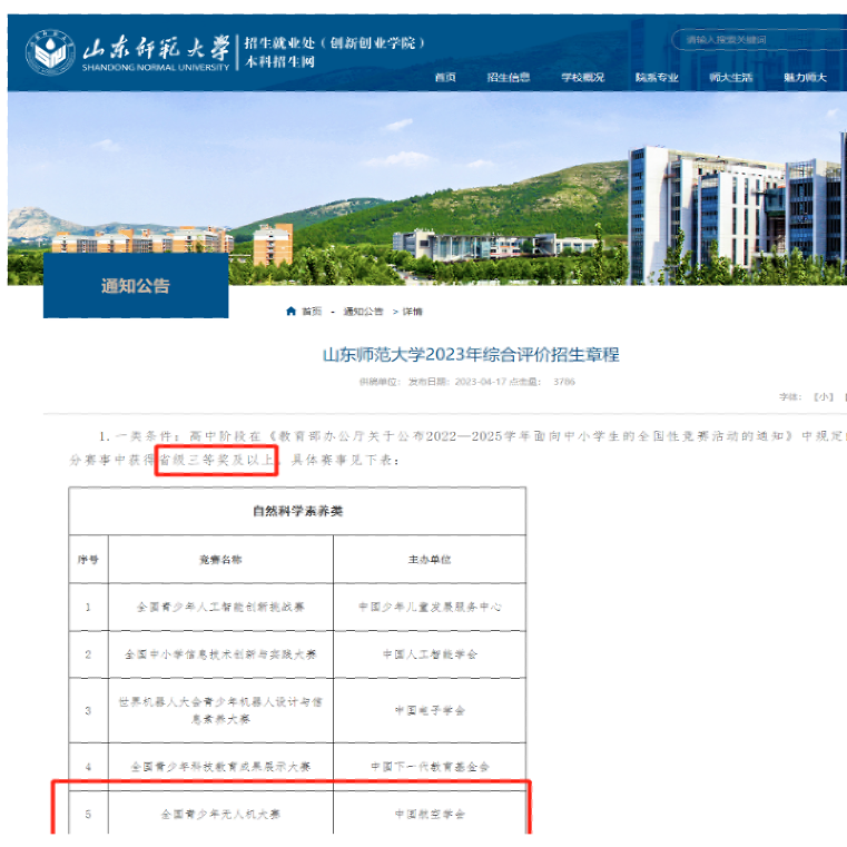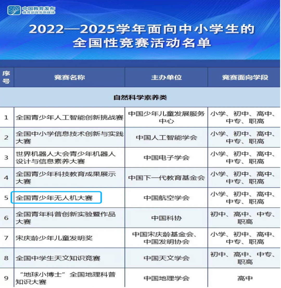 (教育部白名单《全国青少年无人机大赛》获得多个大学院校的认可,在招生官网页面可以查询到相关的赛事要求。)