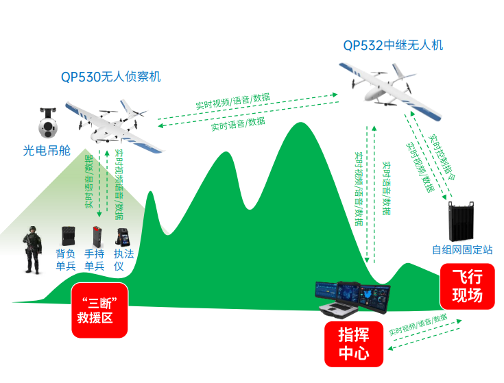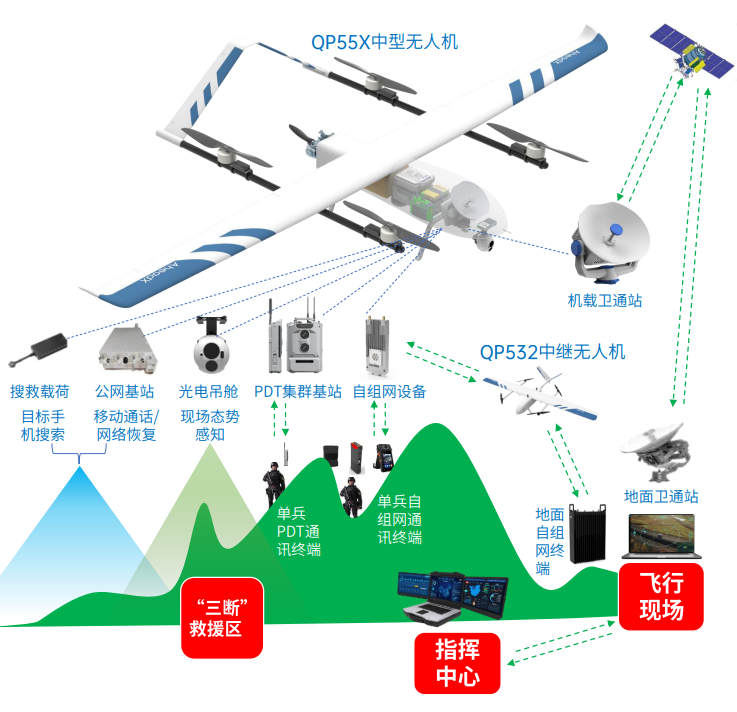 致导科技中型无人机救援平台在灾后“三断”场景作业示意图