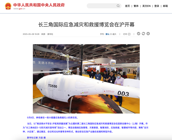 2023年,联合飞机惊艳亮相长三角国际应急博览会,获30+家主流媒体关注报道