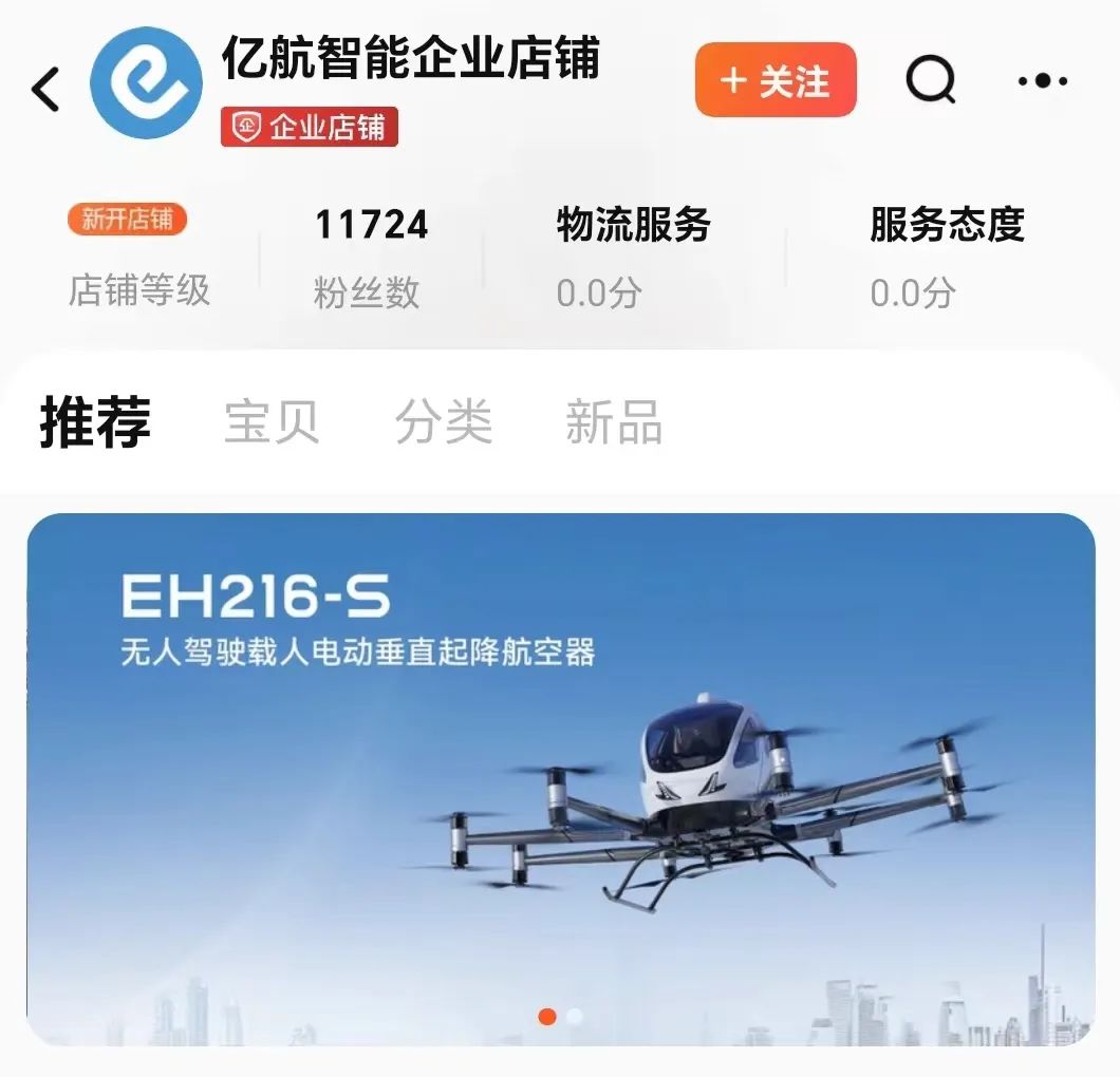 淘宝工业品负责人天德表示,亿航智能EH216-S“空中的士”上架淘宝工业品并成功完成了在线的首单成交,是低空经济发展的标志性事件。作为国民消费平台,希望淘宝为各种硬核科技和新发明带来新的商业想象力。