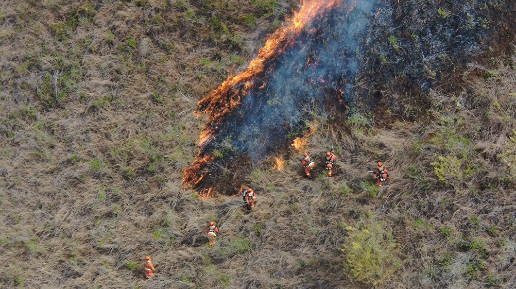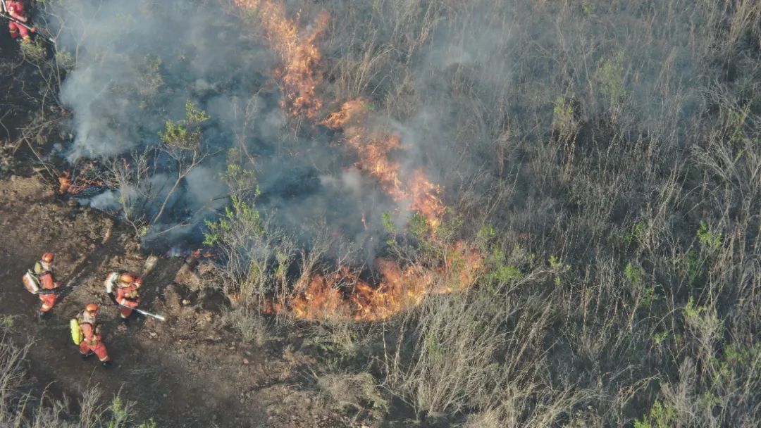 山火火场温度一般高达45度以上,遇到大风天气,火场阵风可达6级,加上喀斯特地形垭口有漏斗效应,火场气流变化莫测,辛苦扑灭的火线很容易被大风下的树冠火付之一炬。