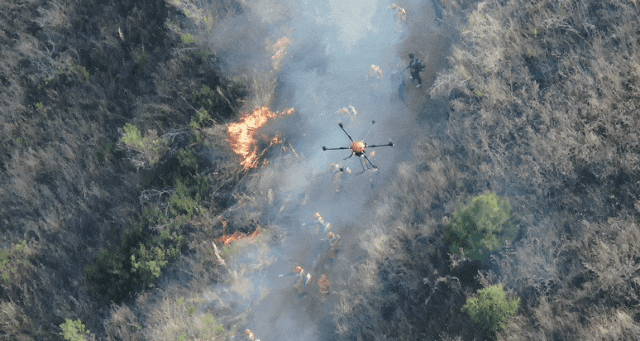 森林火灾初发,被正在执行日常巡检作业的ZV15E复合翼无人机自主发现并识别火场坐标、面积、火线长度等数据,同步传回森林消防安全部门,随后消防人员操作D60多旋翼无人机快速到达火情现场,通过投掷灭火弹控制火情...这是目前森林防灭火领域发生的真实场景。【详情】