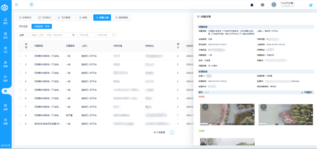 *无人机自动巡河系统已与“水域监管一件事”平台打通,可进行问题发现到解决的跟进管理