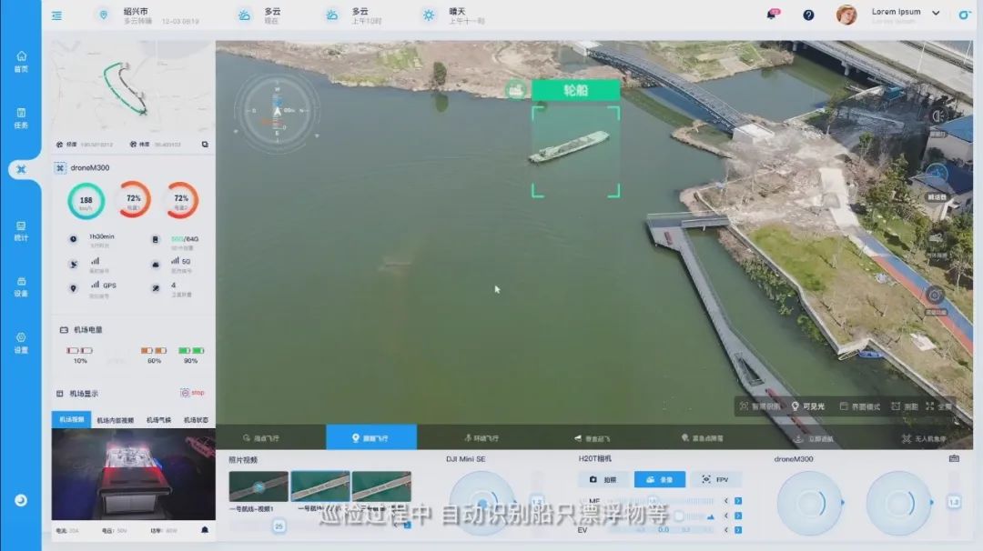 据了解,“电子河长”不仅解决了巡河盲区无法覆盖的问题,还实现水域生态全程精准管控,创新全气候24小时不间断无人监控智能平台,通过已建成的无人机定线巡航、高空鹰眼监控等监测技术,对重点规划的区域巡航检查,开发智能AI训练模型,还能及时规避一些风险。