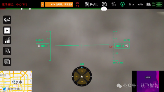 激光甲烷app软件基于大疆MSDK5.5开发,操作页面主要由下图所示的sdk控件、相机显示、地图显示,功能按钮4部分构成。