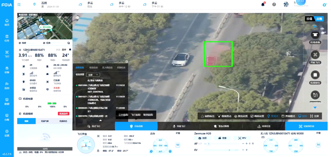 在飞行追踪中,即使面对车辆等高速移动的目标,复亚无人机管理平台也可以通过高速、高精度的飞行控制算法,保持目标的中心位置,确保追踪的稳定性和准确性。