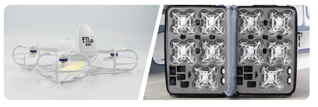 FYLO集群系列产品,这是一套全新的编队无人机教育产品,从原来的单机编程,融入编队群控技术,利用UWB模块进行高精度定位,满足不同环境下的编队无人机室内外飞行表演和教学展示需求。全方位的桨叶保护罩和安全性堵转保护、低电量保护、失控保护等,将飞行安全做到极至,充分体现无人机产品的高稳定性;5W炫彩LED灯光,配合无人机动态坐标,将光影艺术通过Scratch和Python程序体现的淋漓尽致;内置图形控制模块,让你一分钟实现快速编程;与此同时,配合飞行仿真平台,使编程结果模拟可见,降低编程难度和飞行风险。编好的代码导入可视化界面,实时模拟最佳飞行效果。来一场光影科技的互动展示,这就是FYLO集群系列产品。