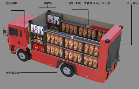 无人机作战单元装备车, 承载一架长航时侦察无人机和三架投弹灭火无人机、60枚森林灭火弹组合作战,快速到达、集群灭火,森林防火日常工作中,起到早发现、早出动、早灭火。