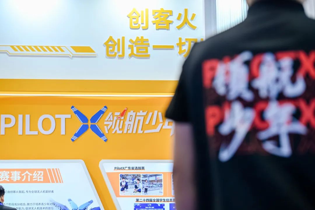 在赛事方面,由创客火技术支持的多项白名单赛事进行了案例展示,同时在我们的赛事体验区,旗下PilotX领航少年全球无人机赛事品牌也正式亮相,观众可以真实的感受到无人机赛项玩法。