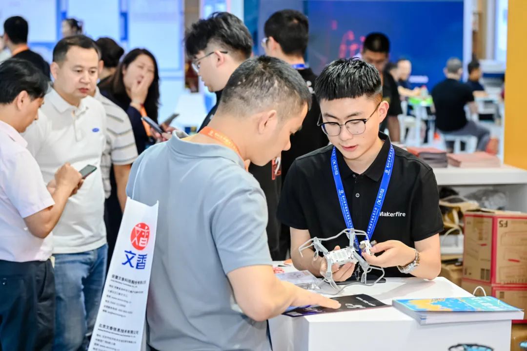 本次展会,创客火重点展示了教育整体解决方案、全系列教育无人机产品、PilotX领航少年无人机挑战赛赛项等内容,全方位呈现了在青少年无人机STEAM/创客教育领域的落地应用与创新成果。现场热闹非凡,吸引了众多展会嘉宾、教育工作者等观众前来体验与交流。