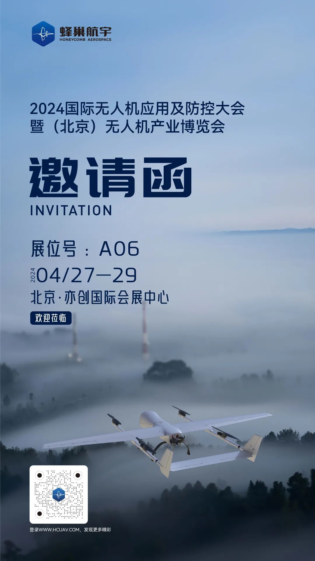 2024国际无人机应用及防控大会暨(北京)无人机产业博览会将于2024年4月27-29日在北京亦创国际会展中心举办。蜂巢航宇受邀参展,我们将展出HC-541应急通信复合翼无人机、HC-325四旋翼无人机等产品。