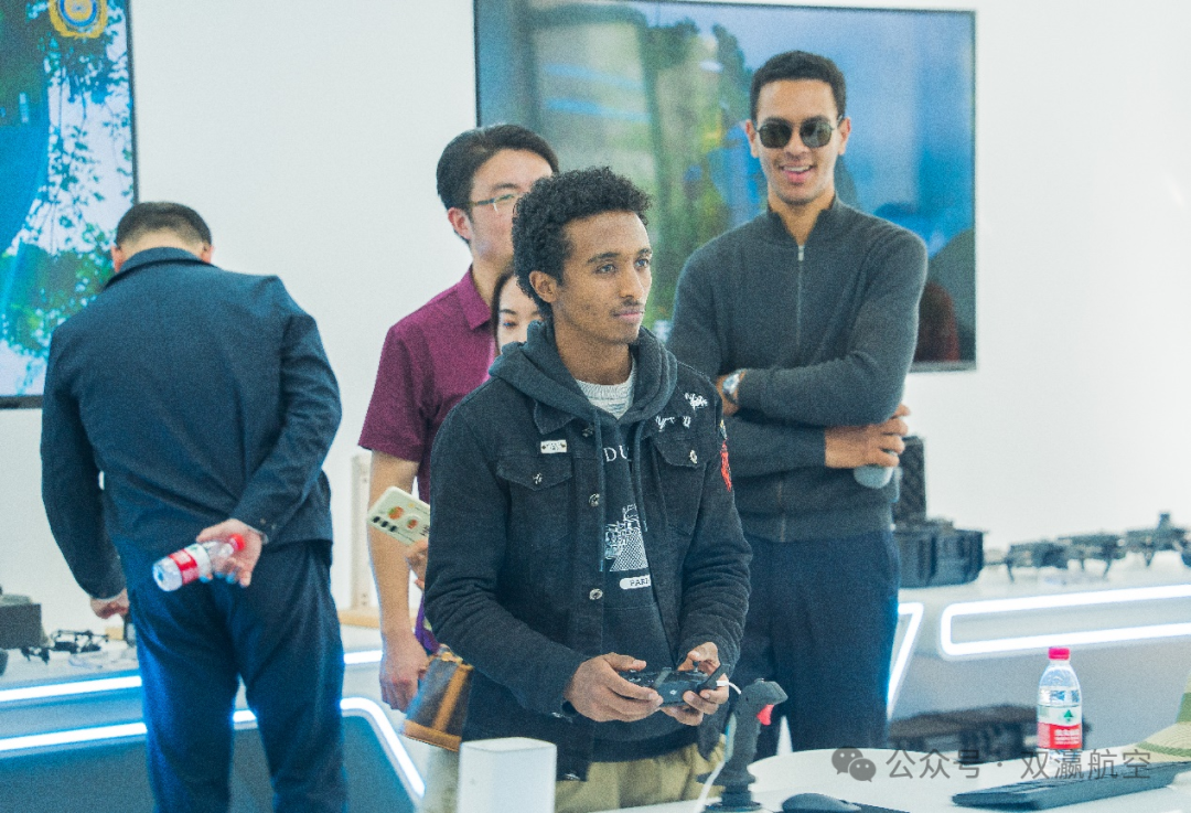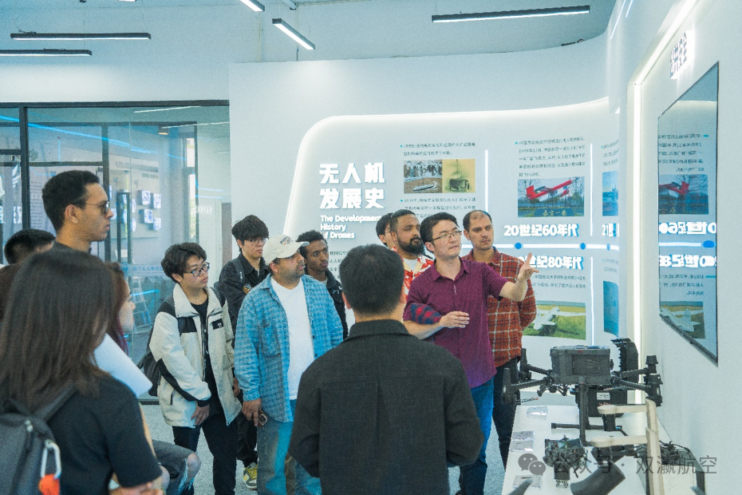 在展厅内,留学生们深入了解了无人机的历史发展、产品种类及应用场景。他们对无人机的多功能性和智能化水平表示出了极大的兴趣。无人机不再只是拍摄风景的工具,而是在公共安全、空间数字化、基础设施巡检等多个领域发挥着重要作用的高科技产品。