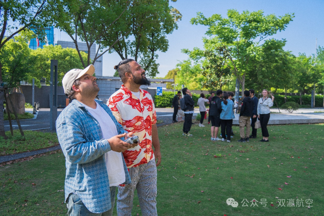 在户外飞行教学体验环节,留学生们在专业人员的指导下,亲自操控无人机,体验了飞行的乐趣。他们按照班级号排列队形,进行了航拍合影,用无人机的视角记录下了这一难忘的时刻。