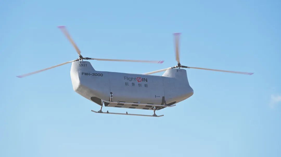 FWH-3000纵列式吨级载重无人直升机,是航景创新为满足国内外日益增长的军民两用使用需求,完全自主投入、正向设计的一款先进多用途重载无人直升机通用运输平台。该机采用纵列式双旋翼布局,最大起飞重量可达2500kg,最大任务载重1000kg。